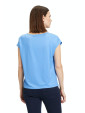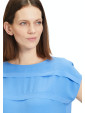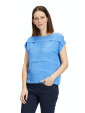 Bluzka w kolorze niebieskim z krótkim rękawem, z przodu poziome nakładki. Dostępna także w kolorze ecru.