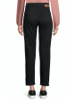 Czarne spodnie ze średnią talią i zwężanymi nogawkami. Z przodu i z tyłu kieszenie.