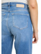 Jeansowe spodnie z prostą nogawką, kieszenie zdobione perełkami.