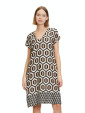 Cienka sukienka z krótkim rękawem w geometryczne wzory, dekolt V, z kieszeniami.