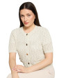 Ażurowy sweter z krótkim rękawem i guzikami.