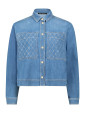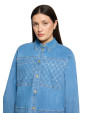 Jeansowy żakiet z kołnierzem i kieszeniami zdobionymi cyrkoniami, zapinany na zatrzaski.Do kompletu spodnie SKU: 6144/1740/8619